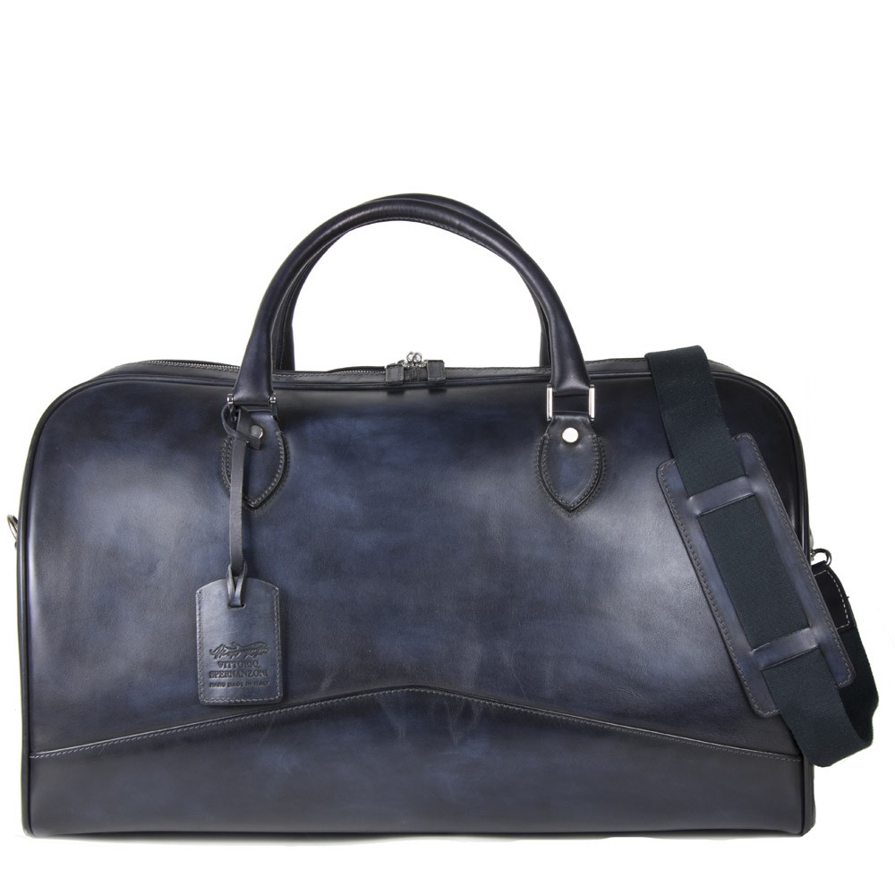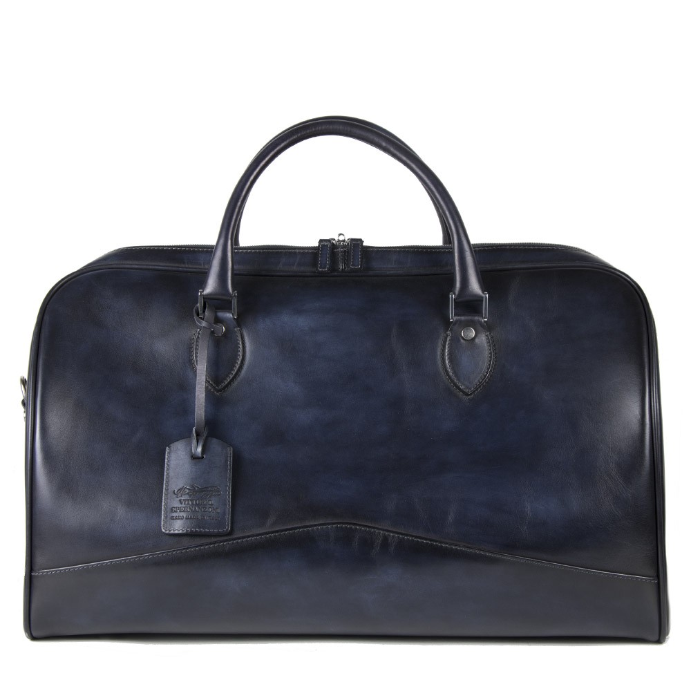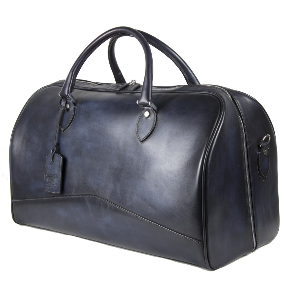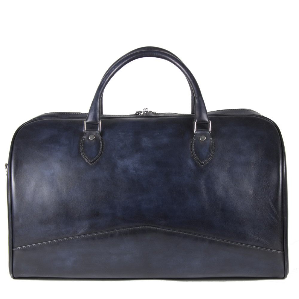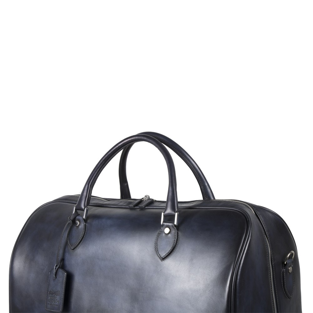 The travel bag is made of refined calf leather with antique colouring by hand in ocean blue tone. Zip closure, sturdy leather handles and adjustable shoulder strap make the bag stylish and useful.