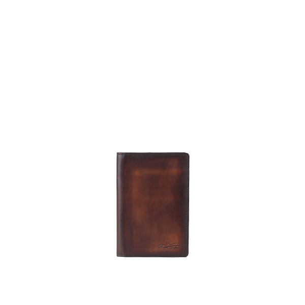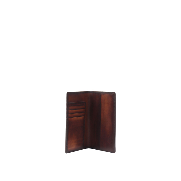The vertical cardcase is made of refined leather coloured and polished by hand in espresso coffee colour. There are 4 card slots and a wide compartment inside.