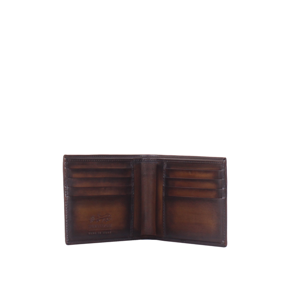 The vertical wallet is made of fine calfskin. The antique finishing by hand creates the unique espresso colour.