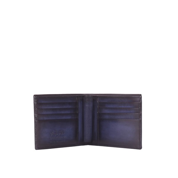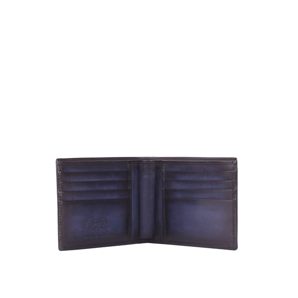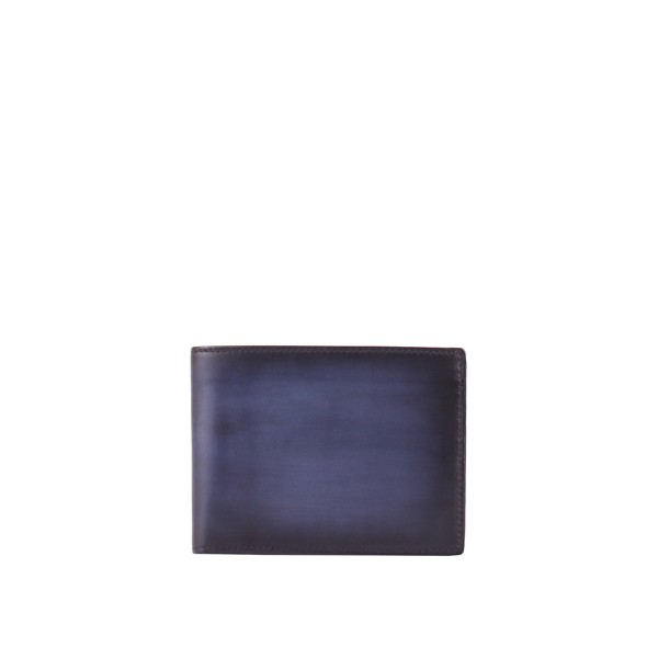 The vertical wallet is made of fine calfskin. The antique finishing by hand creates the unique ocean blue colour.