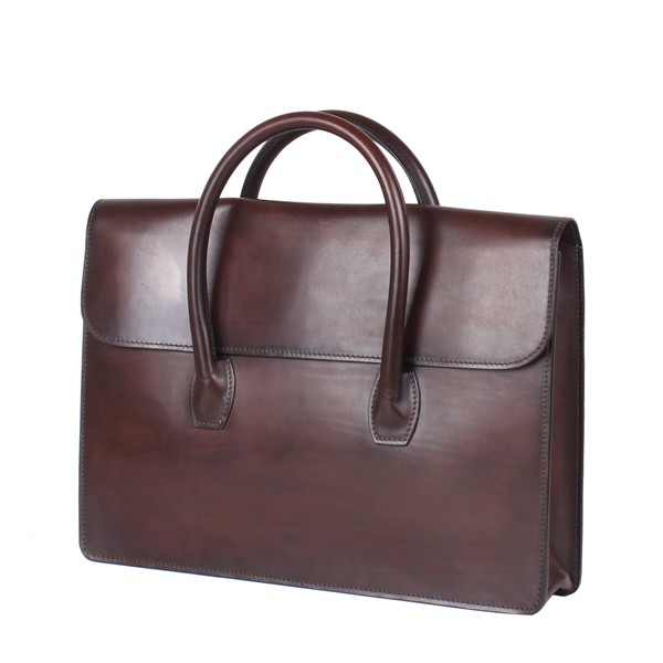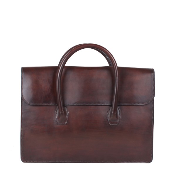 The briefcase is made of refined calfskin coloured and polished by hand in espresso colour. Made up of double leather handles with an inner pocket and a pen holder. The antique finishing and useful features make the briefcase unique and stylish.