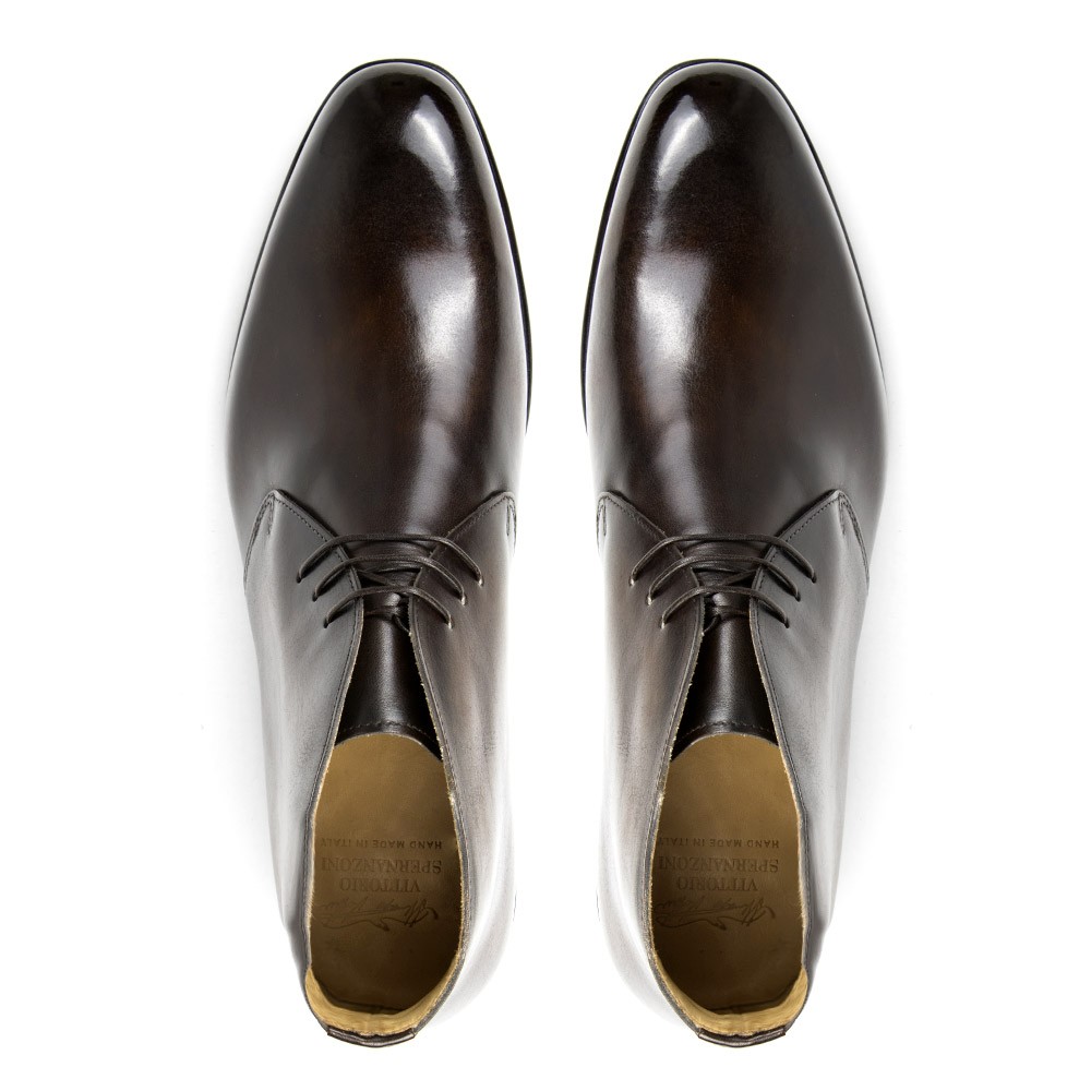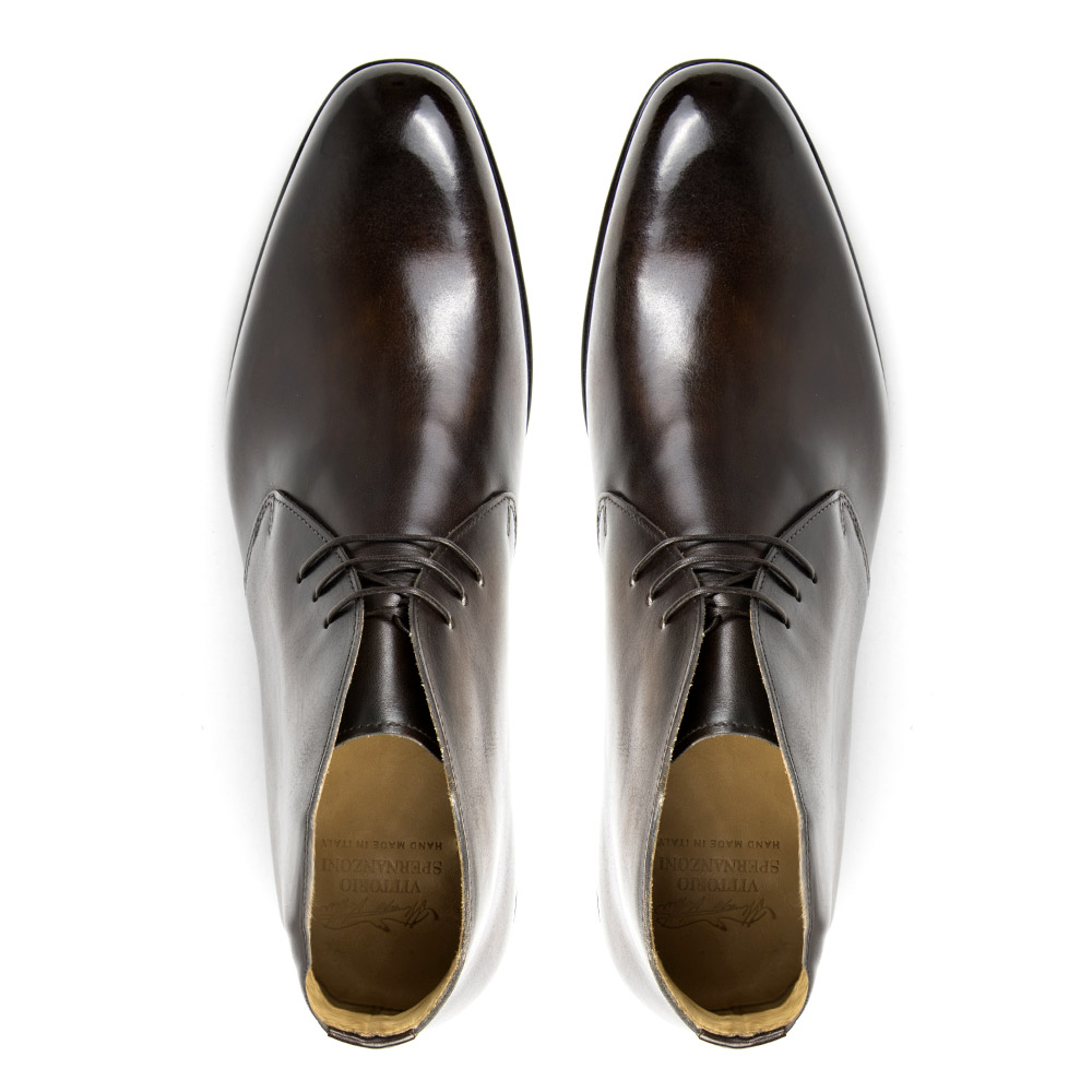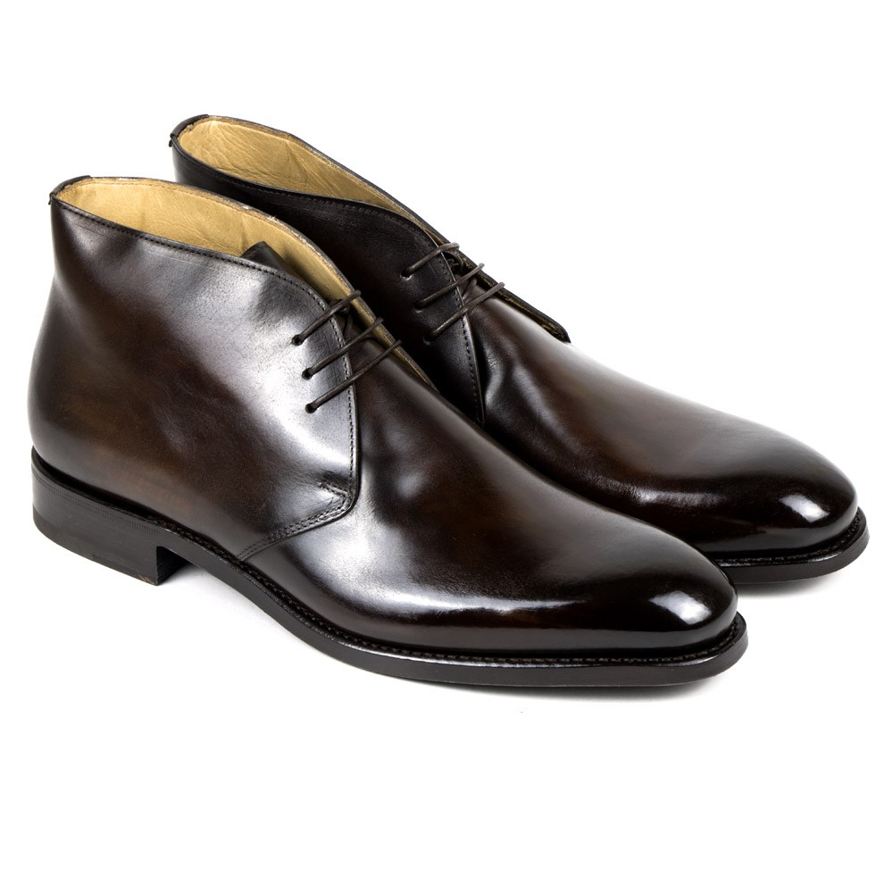 Ankle boots with a contemporary style is realized in a soft and rounded design. Boots are made of soft espresso coffee colour leather with antique finish and hand-polish. Leather sole constructed by Goodyear technique.