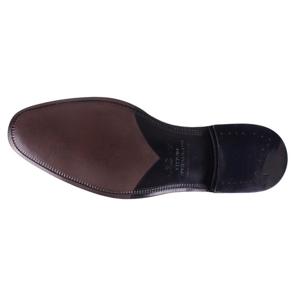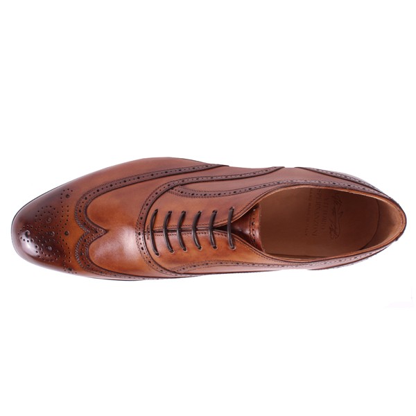 The 6-hole lace-up oxford is made of hand-coloured and hand-polished Amber colour leather. Classic design created by the craftsman, with floral punched decoration on the tip and the upper. Leather sole constructed by Goodyear technique.